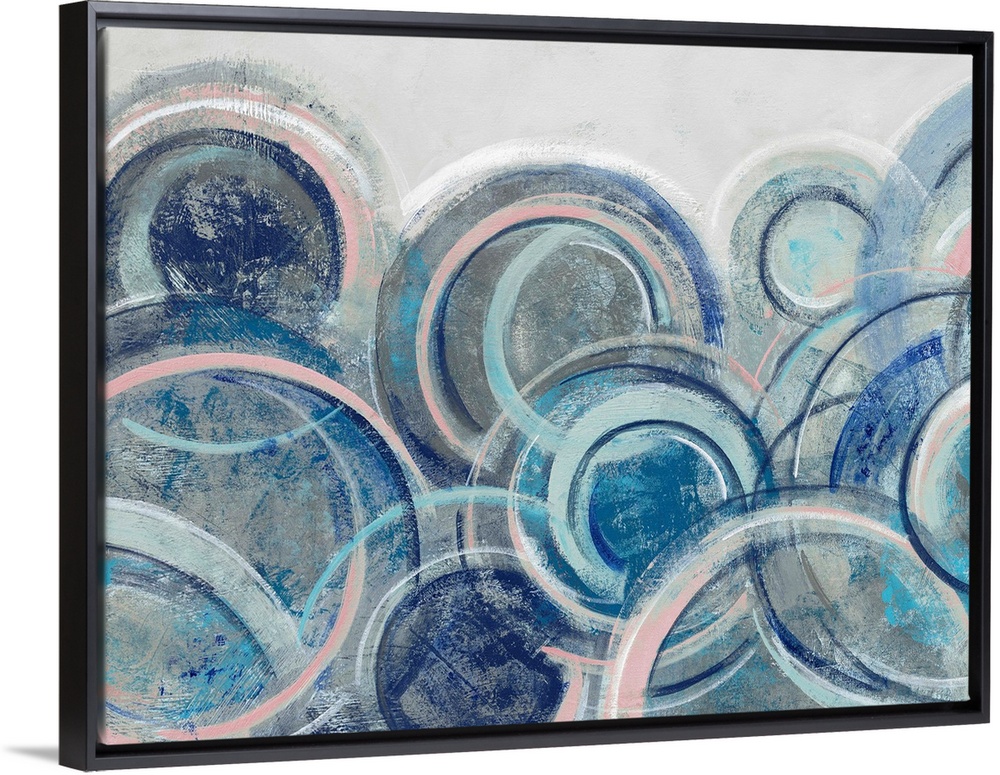 <p>Contemporary abstract artwork featuring an array of blue circles over a light gray background.</p>
