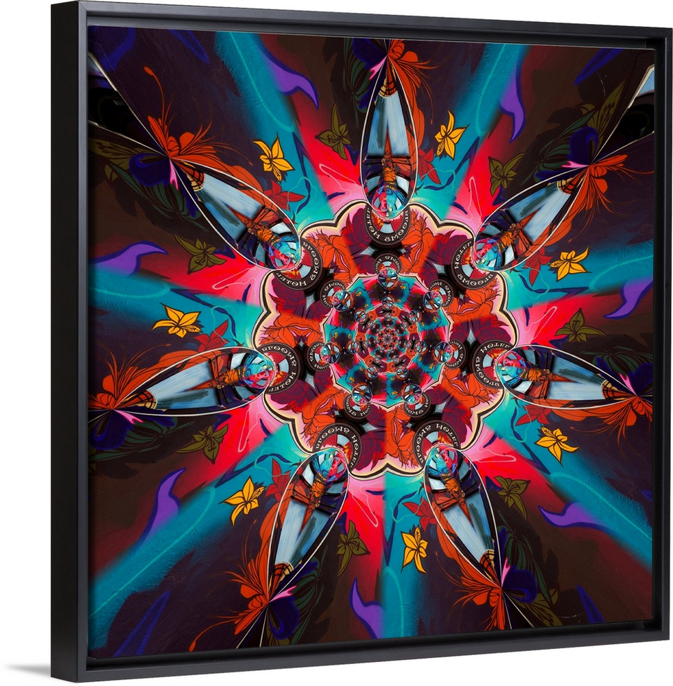 <p>Psychedelic circular figure created with different shapes and colors.</p>