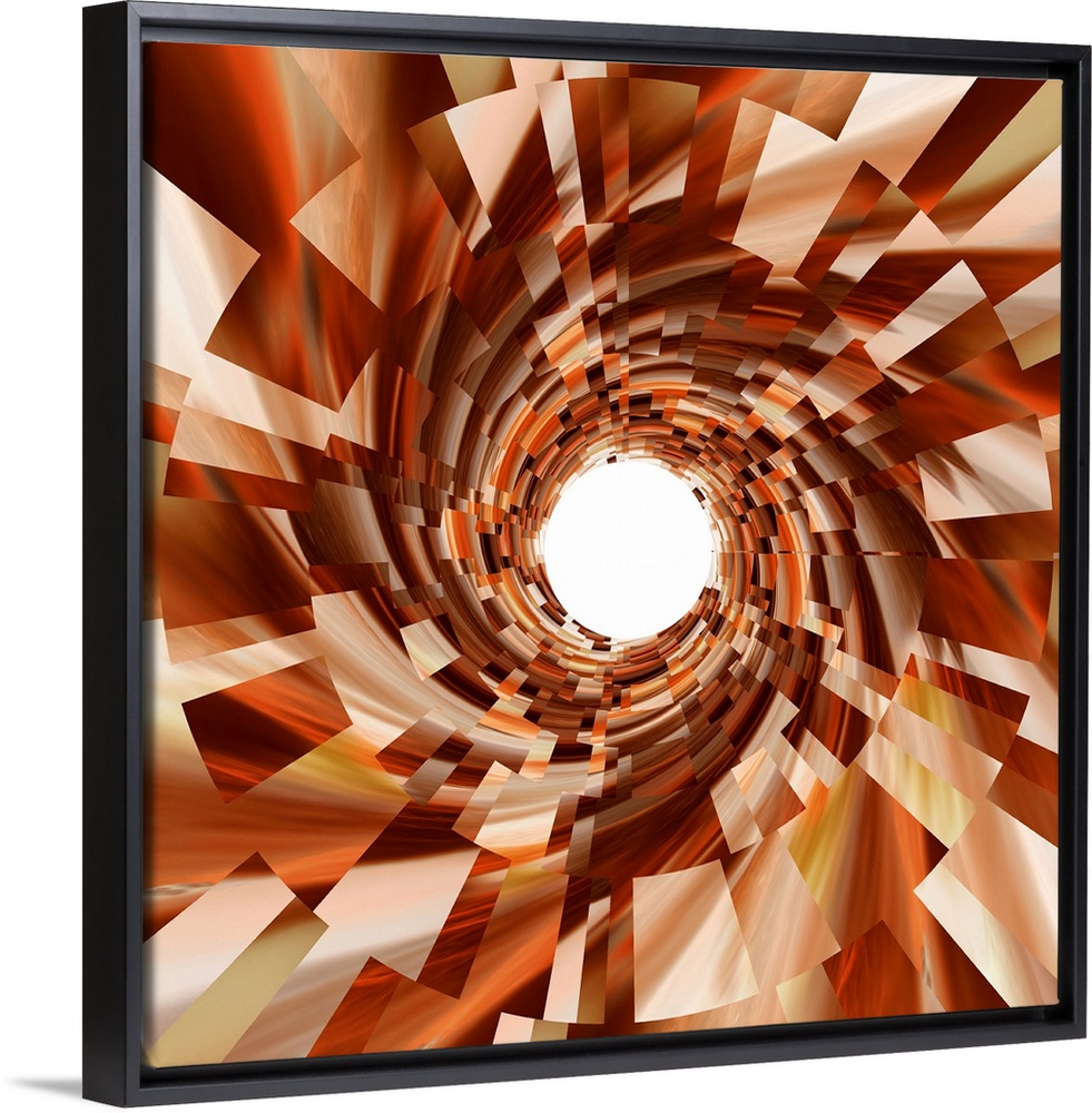 <p>Rectangular shapes formed together to create circles inside circles with a tunnel look leading to a white circular center.</p>