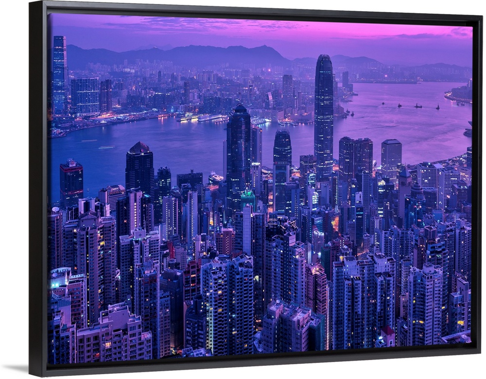 <p>Ariel view of the city of Hong Kong, China at sunset.</p>