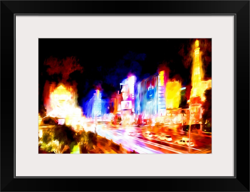 <p>Photograph with a painterly effect of Las Vegas lit up at night.</p>