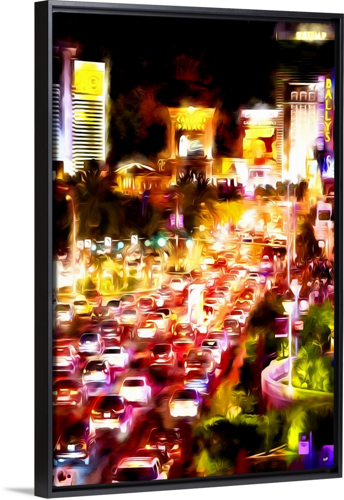 <p>Photograph with a painterly effect of Las Vegas lit up at night.</p>