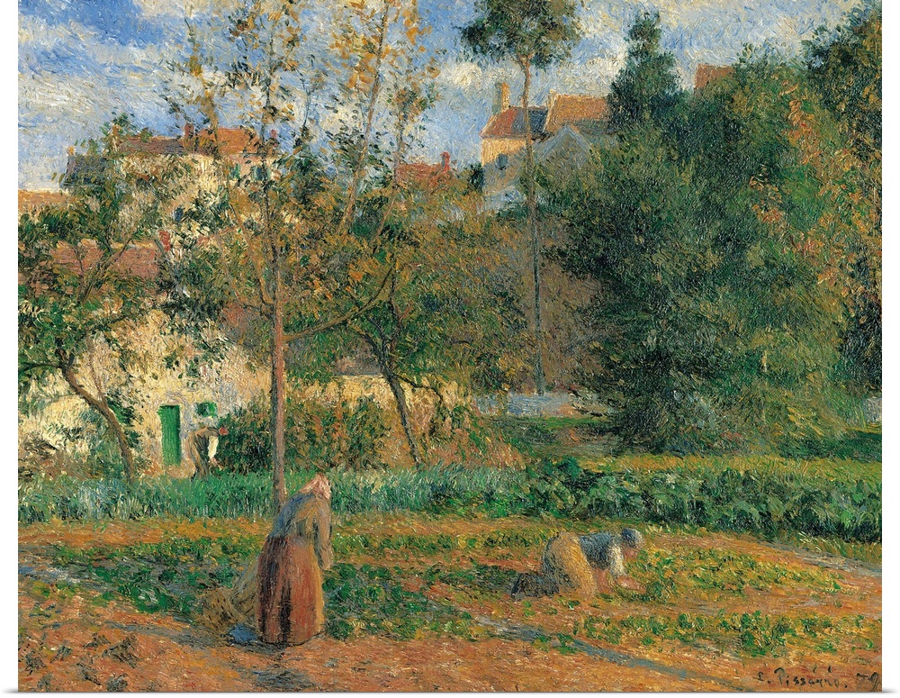 <p>Vegetable Garden at the Hermitage, Pontoise, by Camille Pissarro, 1879, 19th Century, oil on canvas, cm 55,5 x 65 - France, Ile de France, Paris, Muse dOrsay, RF1937-48. All. Vegetable garden at the Hermitage, Pontoise garden woman landscape trees shadows</p>