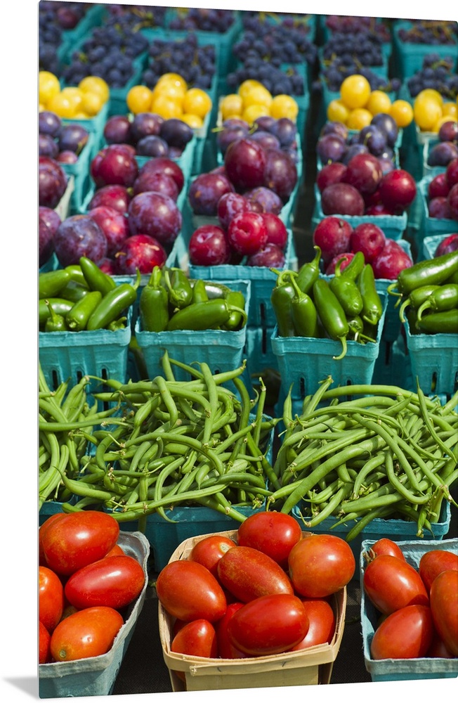 <p>USA, New York State, New York, Vegetables and fruits in boxes</p>