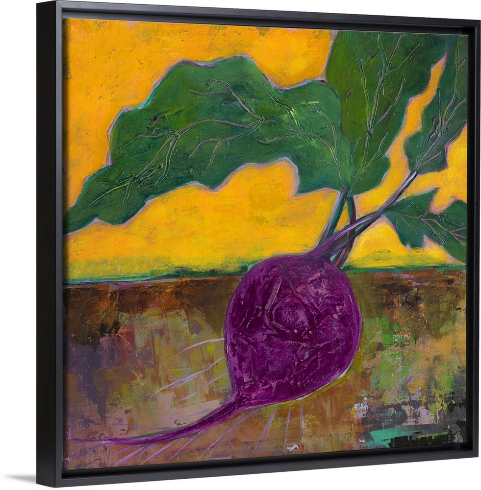 <p>Contemporary painting of a cross section view of garden vegetables in the ground.</p>