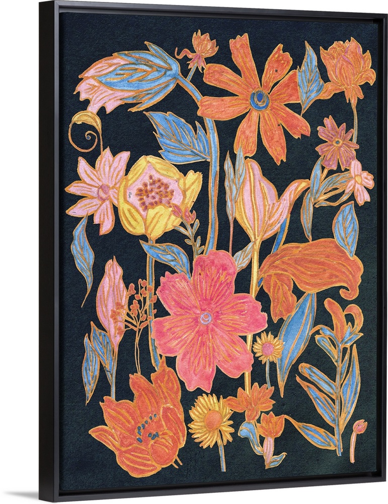 Art Blue Wall Art Midnight Flora Secret Garden Reimagined Decorative Art Florals Orange Wall Art Painting Melissa Wang