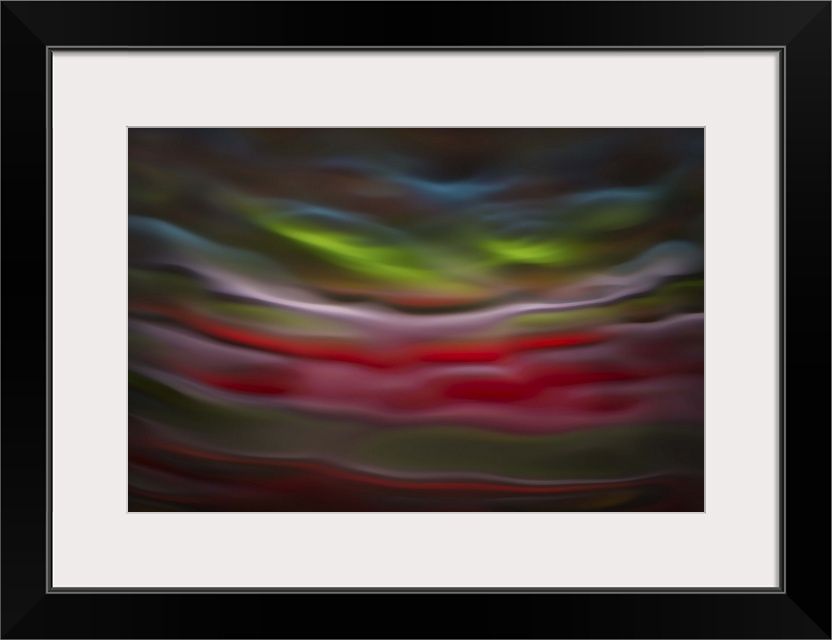 <p>Abstract photograph in green and red shades resembling ocean waves.</p>