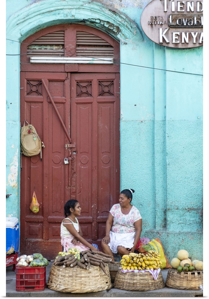 <p>Americas, Central America, Nicaragua, Granada, vendors in the central market selling manioc (cassava), melons and other fruit and vegetables</p>