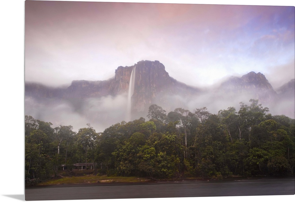 <p>Venezuela, Guayana, Canaima National Park, Mist swirls round Angel Falls at sunrise</p>