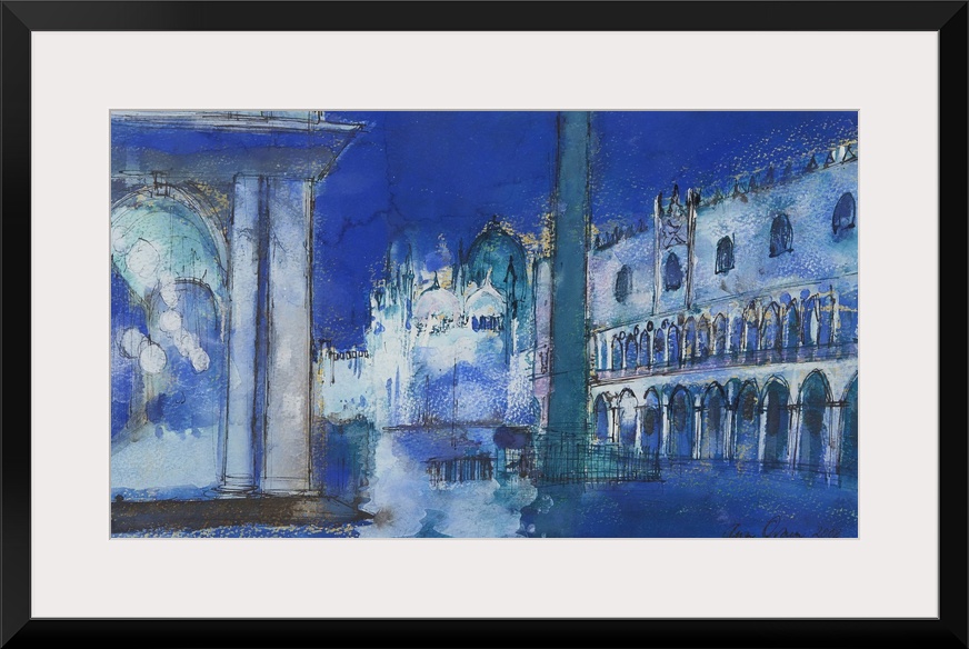 Art Transitional Blue Wall Art Cityscapes Contemporary Art Sapphire Ann Oram Painting Europe Italy Venice Watercolor