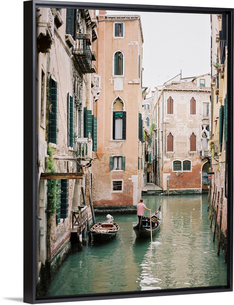 <p>Photograph of a gondolier steering his way through the canals of Venice, Italy.</p>