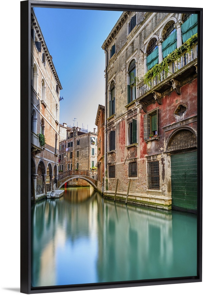 <p>Venice cityscape, narrow water canal, bridge and traditional buildings. Italy, Europe.</p>