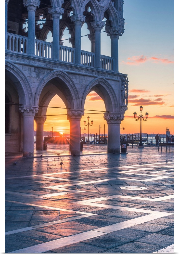 <p>Venice, Veneto, Italy. Sunrise Through The Arches Of Doge's Palace In Piazzetta San Marco.</p>