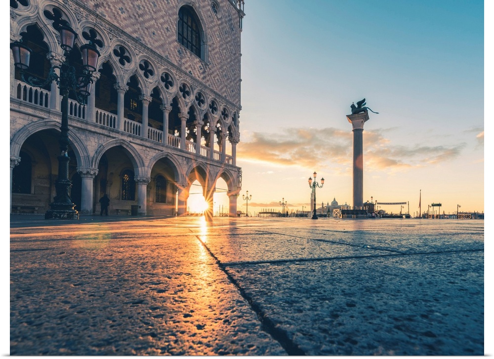 <p>Venice, Veneto, Italy. Sunrise Through The Arches Of Doge's Palace In Piazzetta San Marco.</p>
