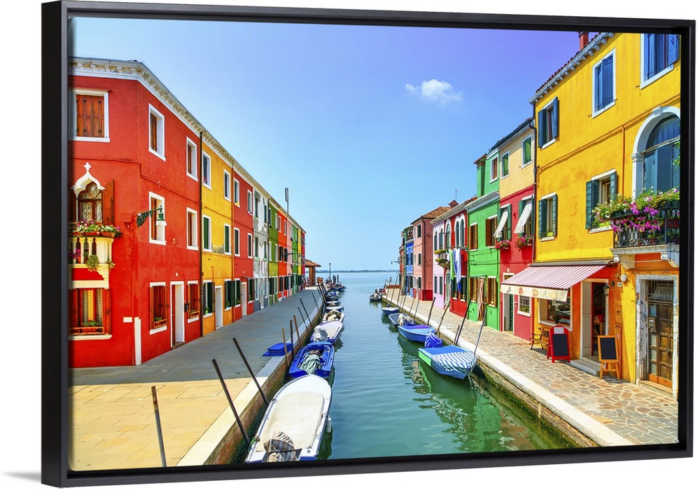 <p>Venice landmark, Burano island canal, colorful houses and boats, Italy. Long exposure photography.</p>