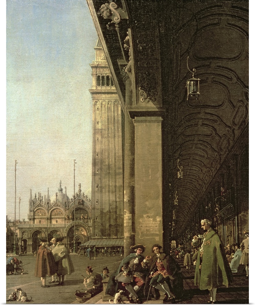 <p>XCF32421 Venice: Piazza di San Marco and the Colonnade of the Procuratie Nuove, c.1756 (oil on canvas) by Canaletto, (Giovanni Antonio Canal) (1697-1768); 46.4x38.1 cm; National Gallery, London, UK; Italian, out of copyright</p>