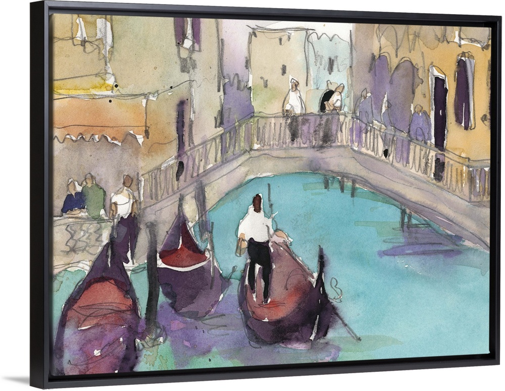 <p>Watercolor open air painting of gondolas on the canal waters in Venice, Italy.</p>