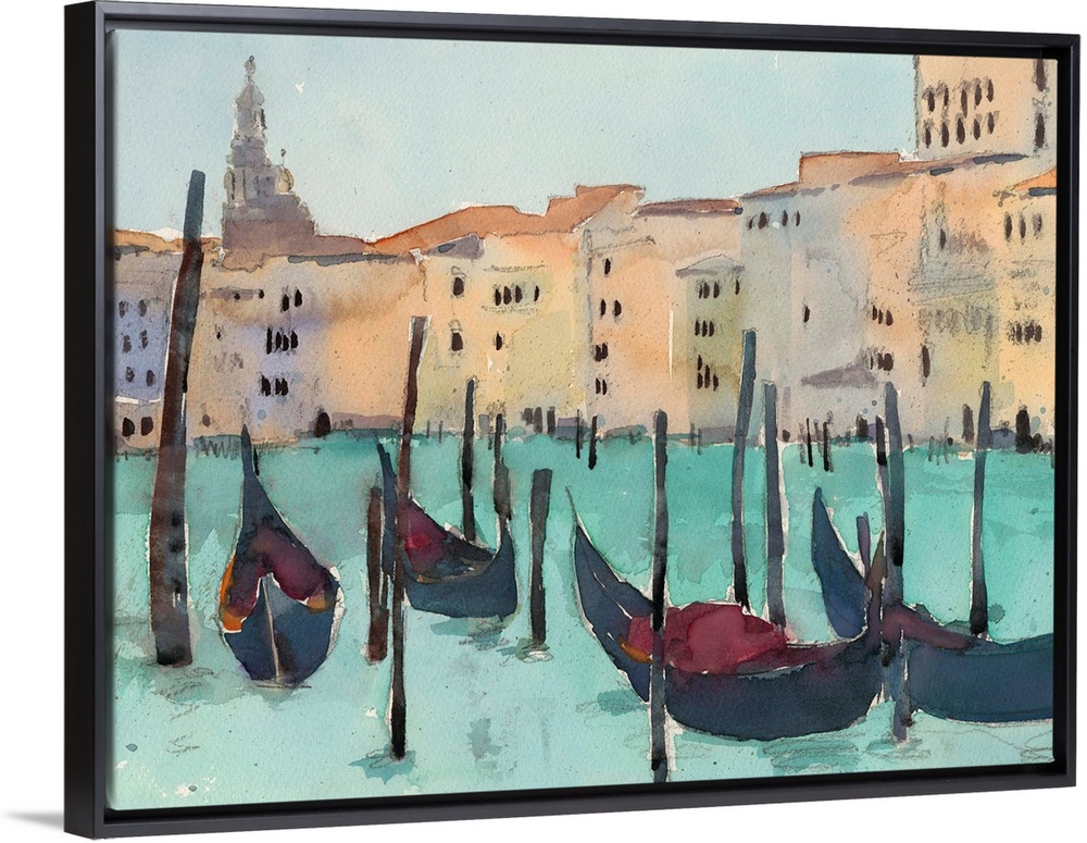 <p>Watercolor open air painting of gondolas on the canal waters in Venice, Italy.</p>