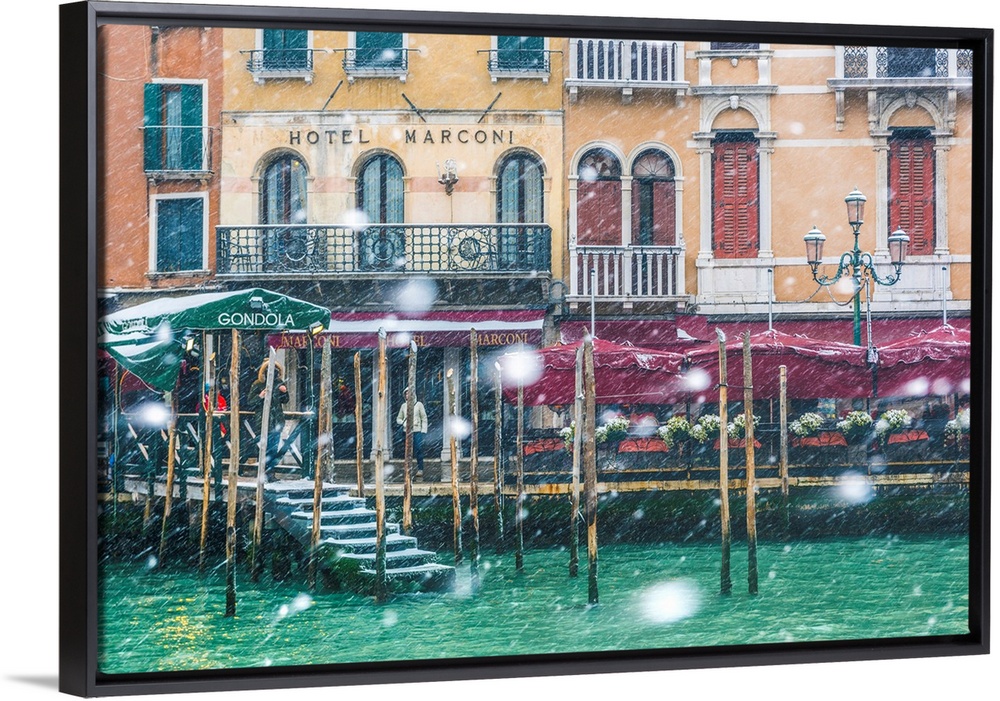<p>Venice, Veneto, Italy. Snowfall At Grand Canal (Canal Grande).</p>