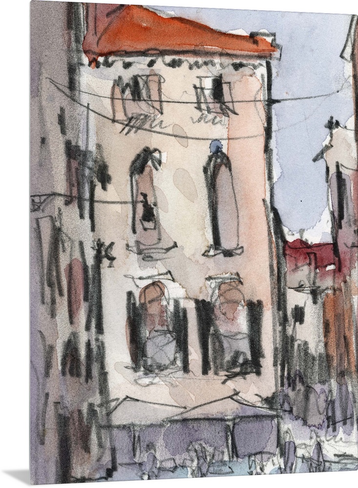 <p>Watercolor cityscape painting of an alley in Venice.</p>
