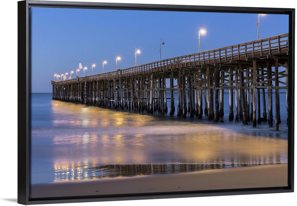 <p>Photograph of Ventura pier lit up at night.</p>
