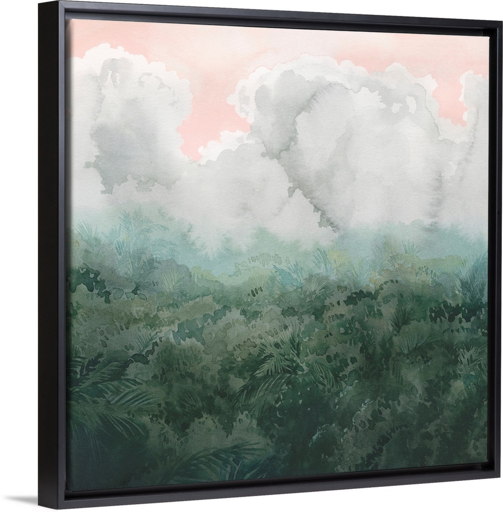 Art Pink and Green Decorative Art Landscapes Skyscapes Clouds Trees Forest Painting Grace Popp Watercolor