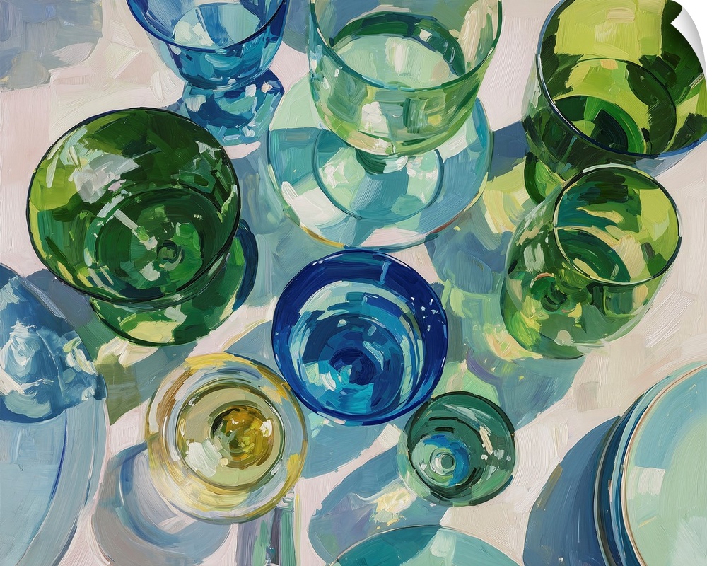 Art Dining Room Art Kitchen Wall Art Blue Wall Art Contemporary Art Food and Drink Equipment and Utensils Paula Freeman Green Wall Art Painting Still Life