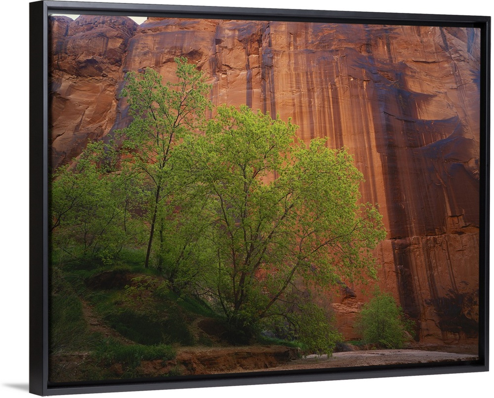 <p>Utah, Colorado Plateau, Paria Canyon-Vermilion Cliffs Wilderness, Box Elder trees (Acer negundo) and sheer sandstone canyon walls.</p>