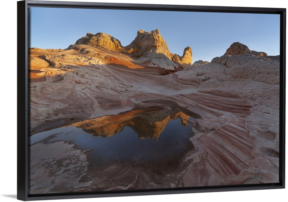<p>USA, Arizona, Vermilion Cliffs National Monument. Striations in sandstone formations and pool. Credit: Don Grall / Jaynes Gallery</p>