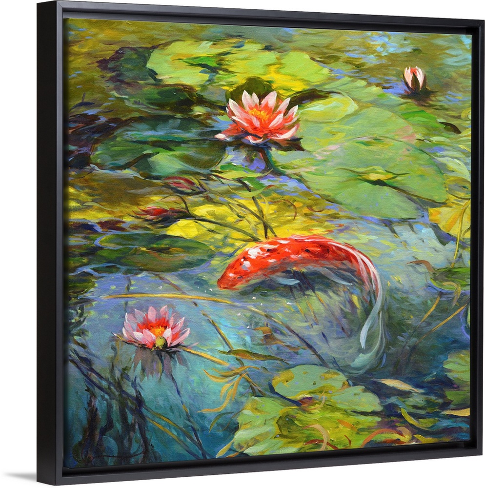 Art Contemporary Art Wildlife Green Wall Art Chuck Larivey Painting Wildlife Marine Life Fish Koi