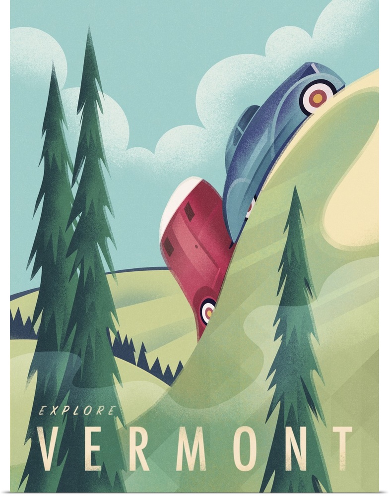 Art Decorative Art Graphic Art Landscapes United States Vermont Transportation Car Travel Posters Contemporary Travel Posters Martin Wickstrom