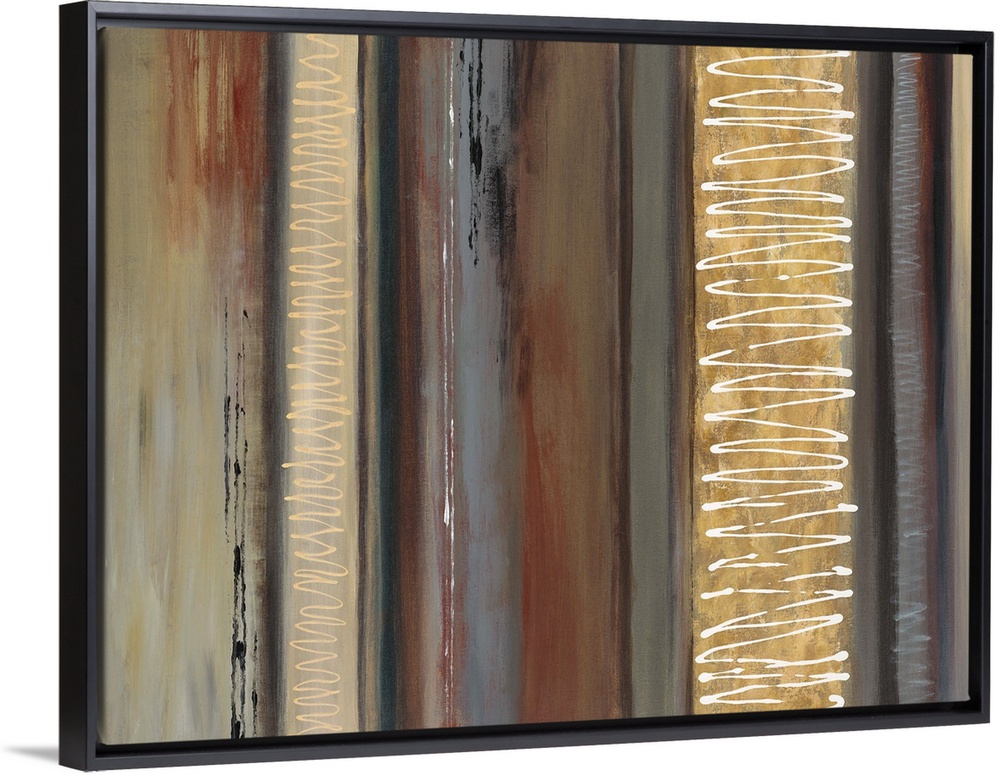 <p>Contemporary abstract painting of vertical lines with different patterns in earthy colors.</p>