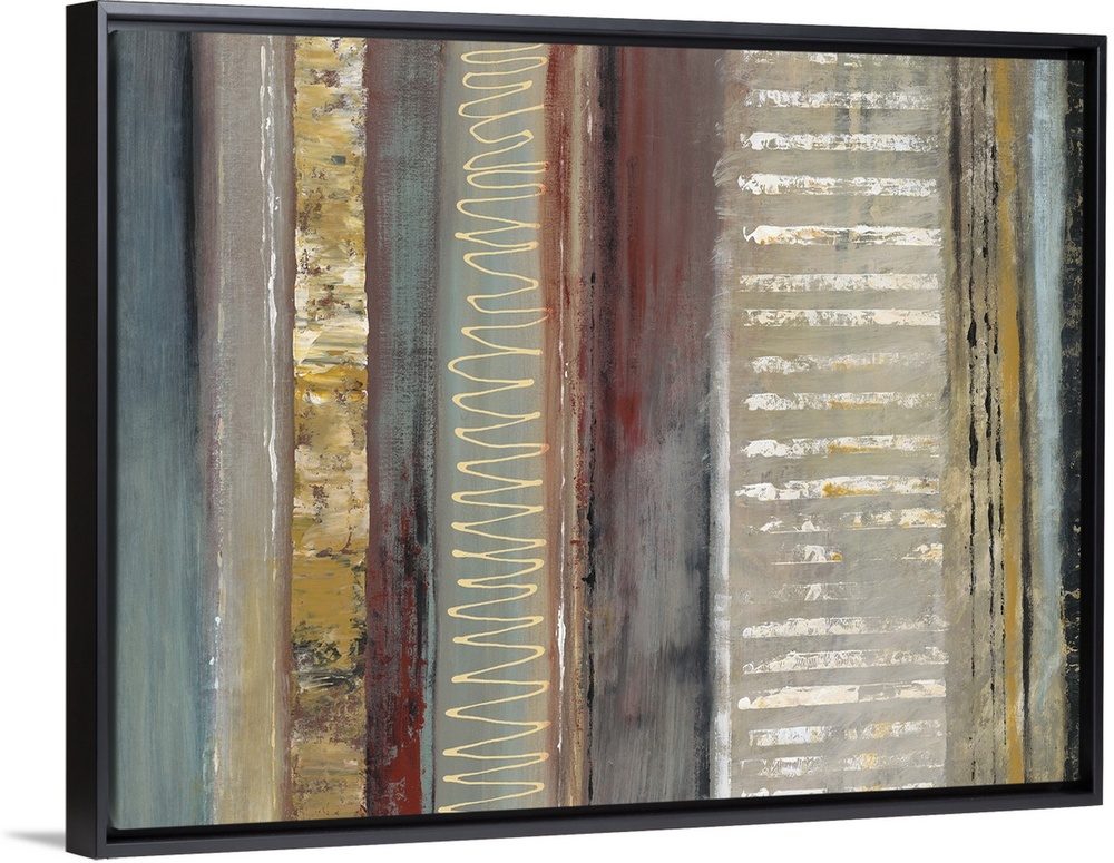 <p>Contemporary abstract painting of vertical lines with different patterns in earthy colors.</p>
