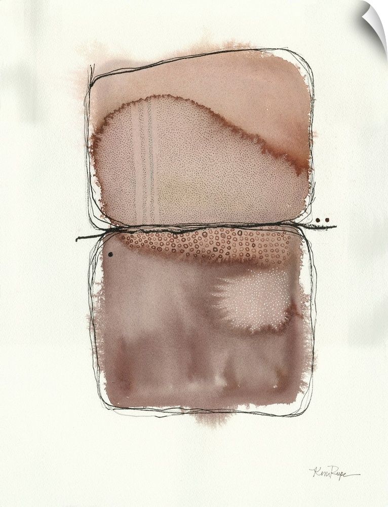 <p>Kim Rupe’s art is harmonious, conscious mark-making of a Zen-like modernism with a contemporary approach to what she perceives. She feels like what she sees is natural. But, she sees it in parts, shapes, and disjointed forms which she expresses through a fluidity of basic organic configurations in watercolors, giving a calming effect through nuances in the visual interest she tries to portray. It is a multidimensional space where a variety colors, shapes, ideas, and thoughts coexist.</p>