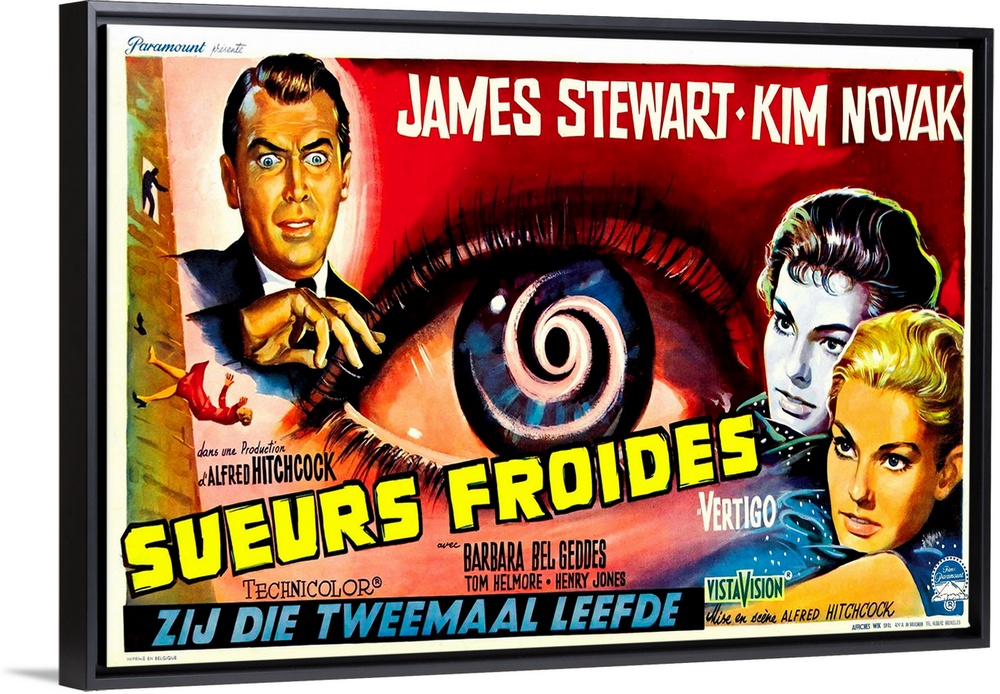<p>Vertigo, Top Left: James Stewart, On Right, Both As A Brunette And A Blonde: Kim Novak, Belgian Poster Art, 1958.</p>