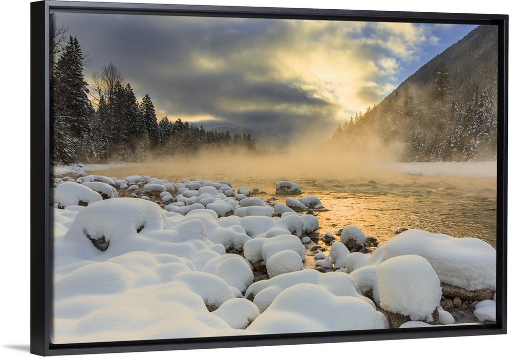 <p>Very cold sunrise over the South Fork of the Flathead River in Hungry Horse, Montana, USA</p>