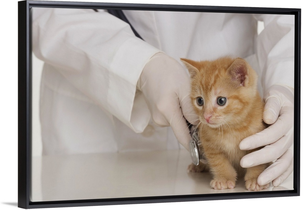 <p>Veterinarian hands examining kitten</p>