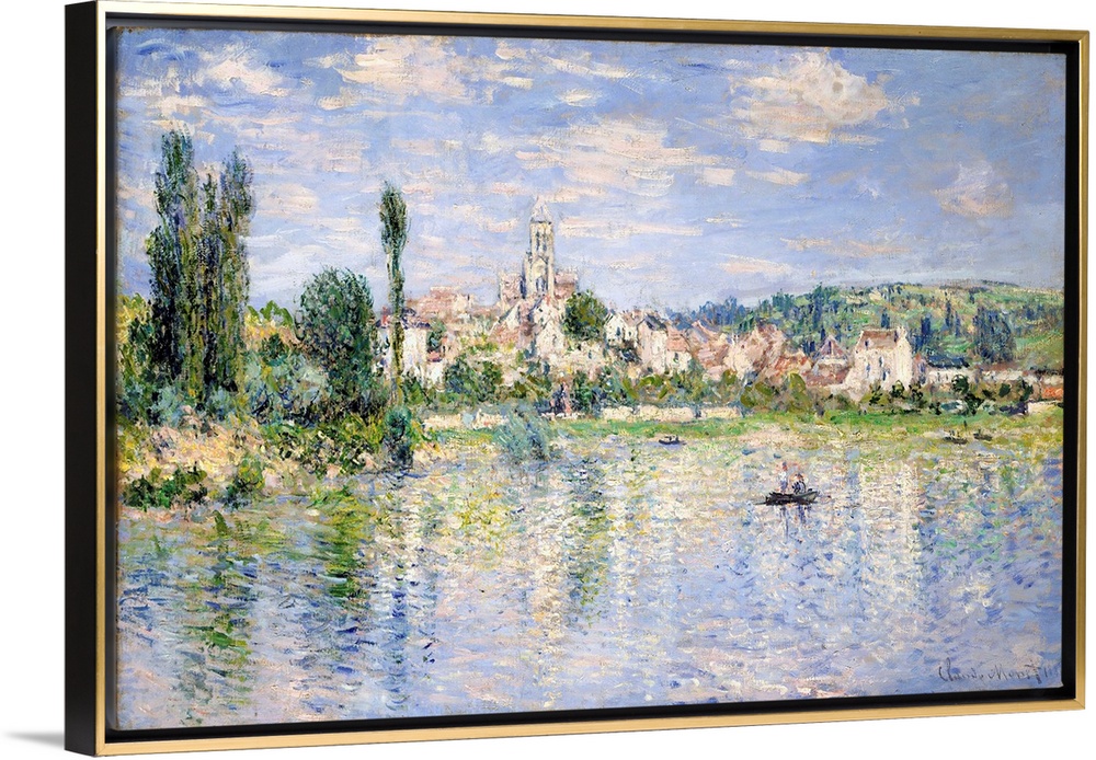 <p>In this view of Vetheuil, seen from the opposite bank of the Seine, the flicker of individual brushstrokes reflects Monet's concern with recording sensations of color and light as accurately as possible. Ironically, this practice resulted in paintings of an increasingly abstract nature. Indeed, the imagery nearly dissolves in the myriad touches of paint.</p>