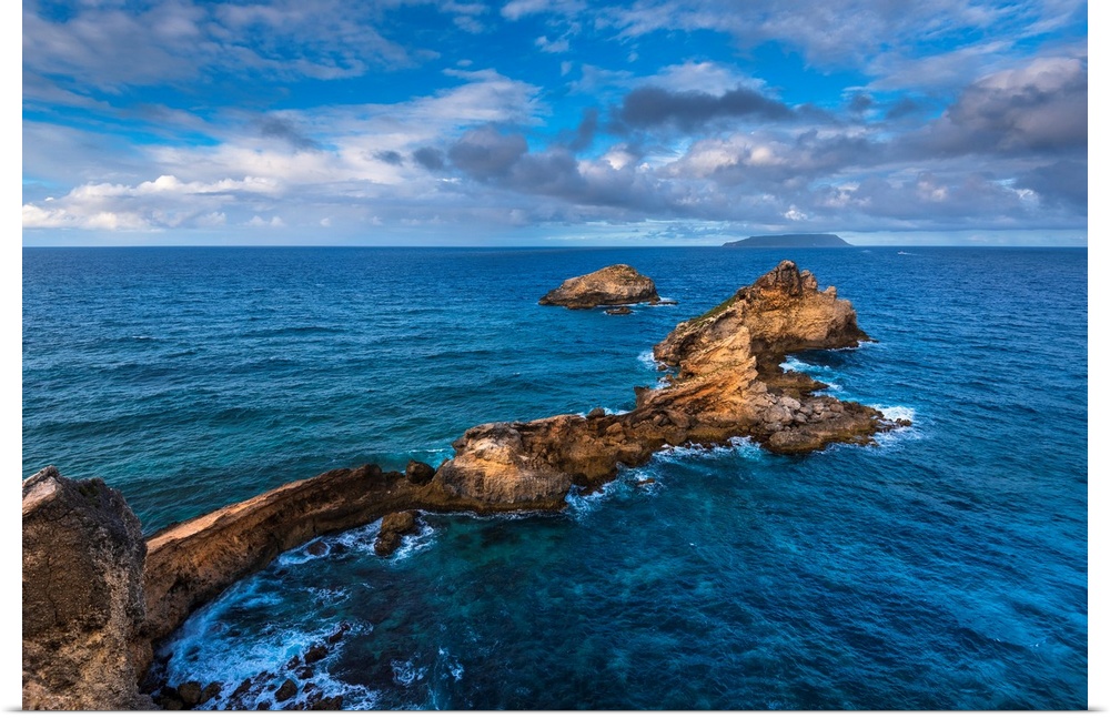 <p>Vibrant Caribbean Sea surrounding the rock formations on the Pointe des Chateaux peninsula on Grande-Terre, Guadeloupe, French West Indies</p>