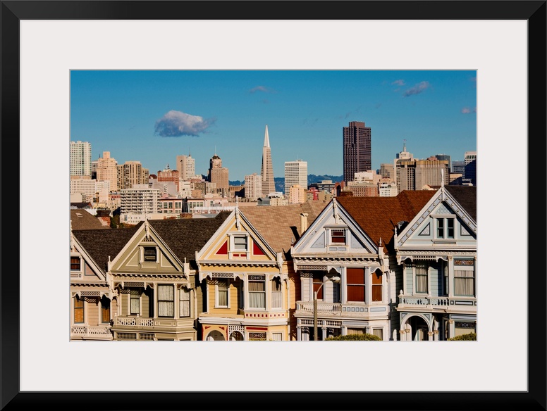 <p>Victorian Houses And Skyline, San Francisco, California, USA</p>