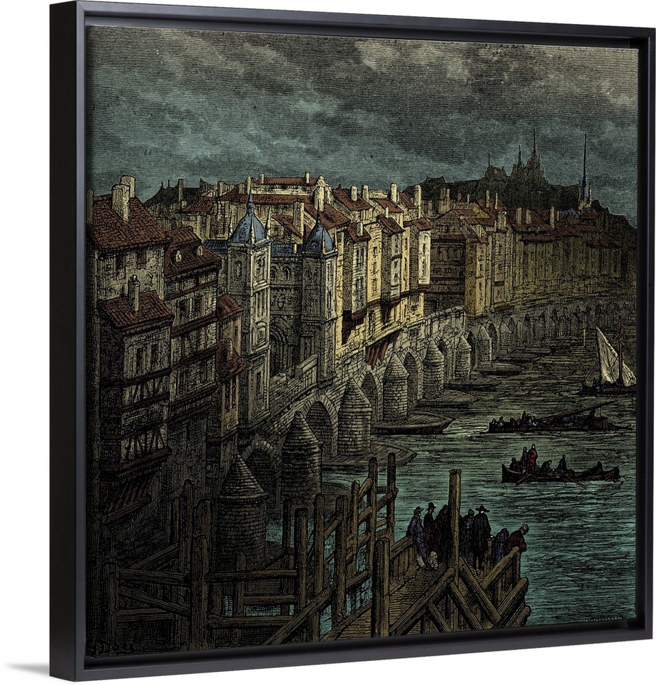 <p>London Bridge. - showing houses built along the bridge Engraving by Gustave Dore, from 'London, a Pilgrimage, by Gustave Dore and Blanchard Jerrold', 1872.</p>
