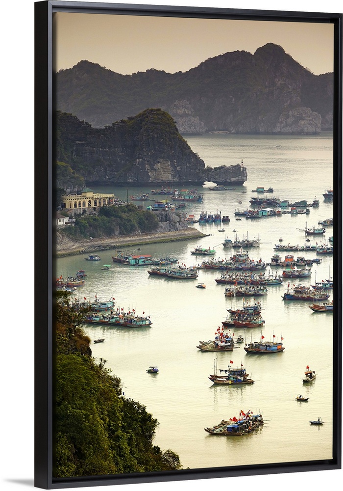 <p>Vietnam, Northeast, Halong Bay, Fishing boats in the bay, Cat Ba Island, Ha Long Bay, Quang Ninh.</p>