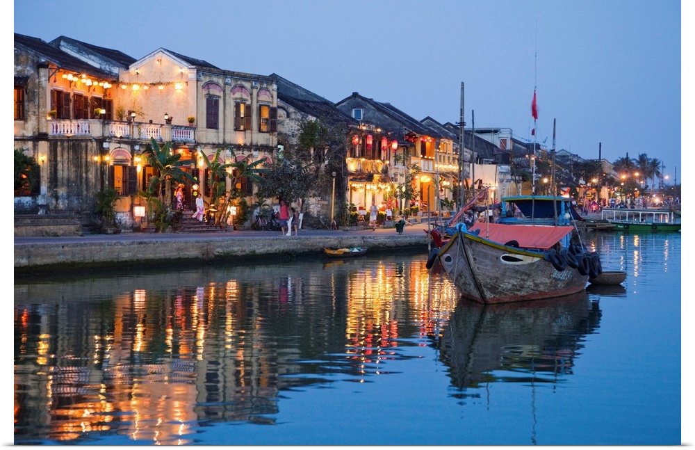 <p>Vietnam, Hoi An, Evening View of Town Skyline and Hoai River</p>