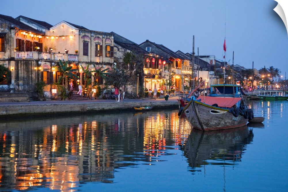 <p>Vietnam, Hoi An, Evening View of Town Skyline and Hoai River</p>