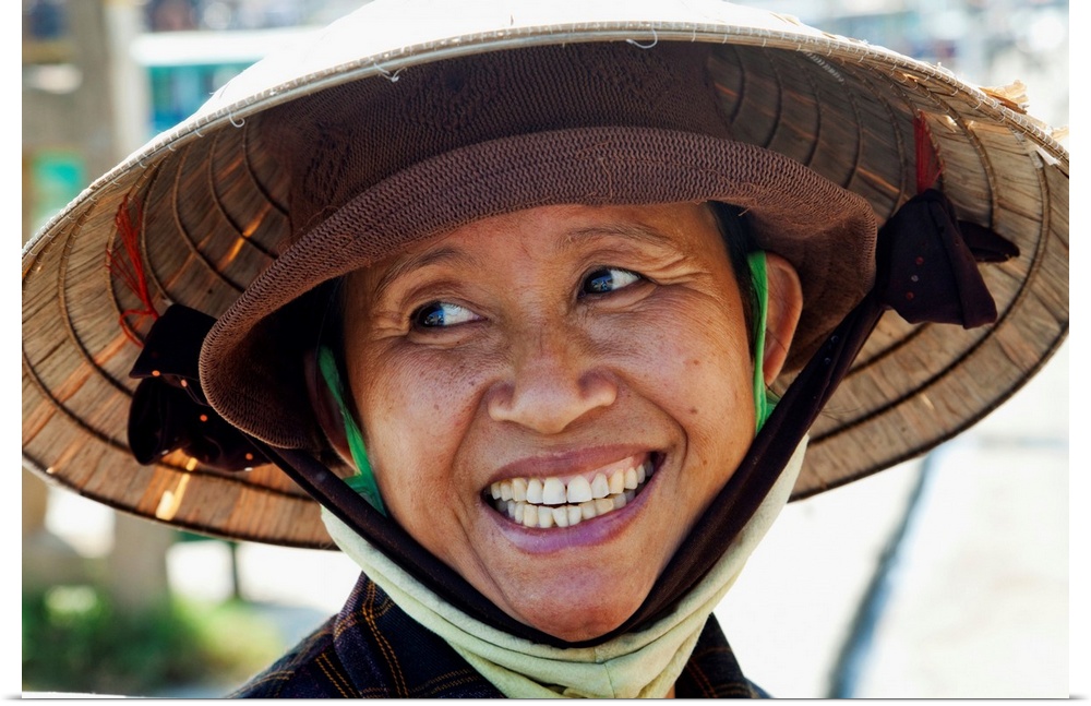 <p>Vietnam, Hoi An, Portrait of Lady Wearing Conical Hat</p>