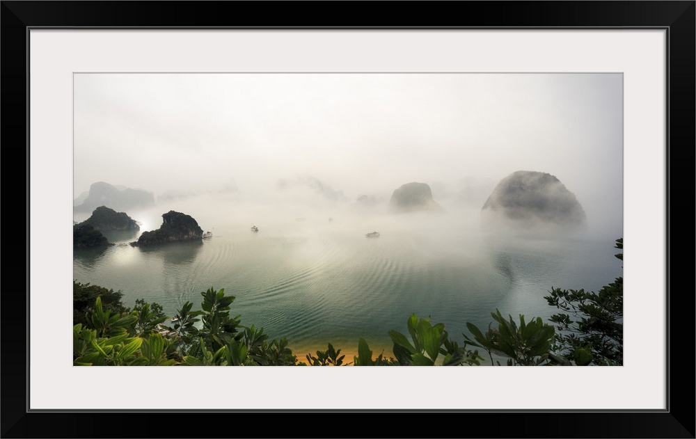 <p>Vietnam, Northeast, Halong Bay, Mist above waters of Halong Bay.</p>