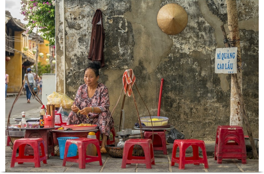<p>Vietnam, South Central Coast, Coast, South Vietnam, Hoi An, Old town, street food stall.</p>