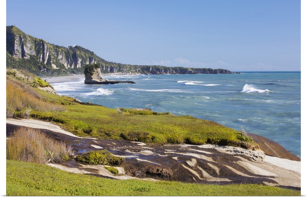 <p>View along the Tasman Sea coast to Dolomite Point, Punakaiki, Paparoa National Park, Buller district, West Coast, South Island, New Zealand, Pacific</p>