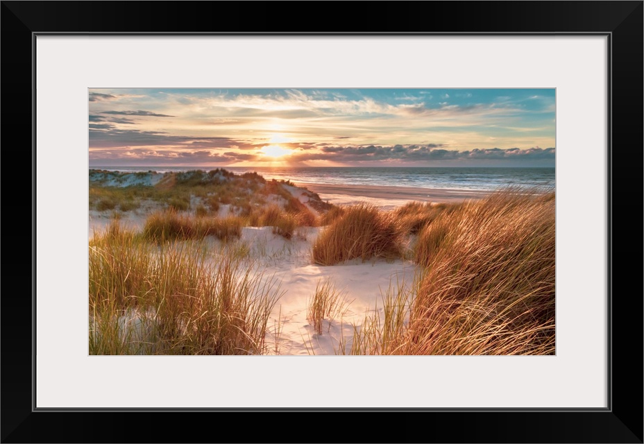 <p>Sunset View from dune top over North Sea from the island of Ameland, Friesland, Netherlands.</p>