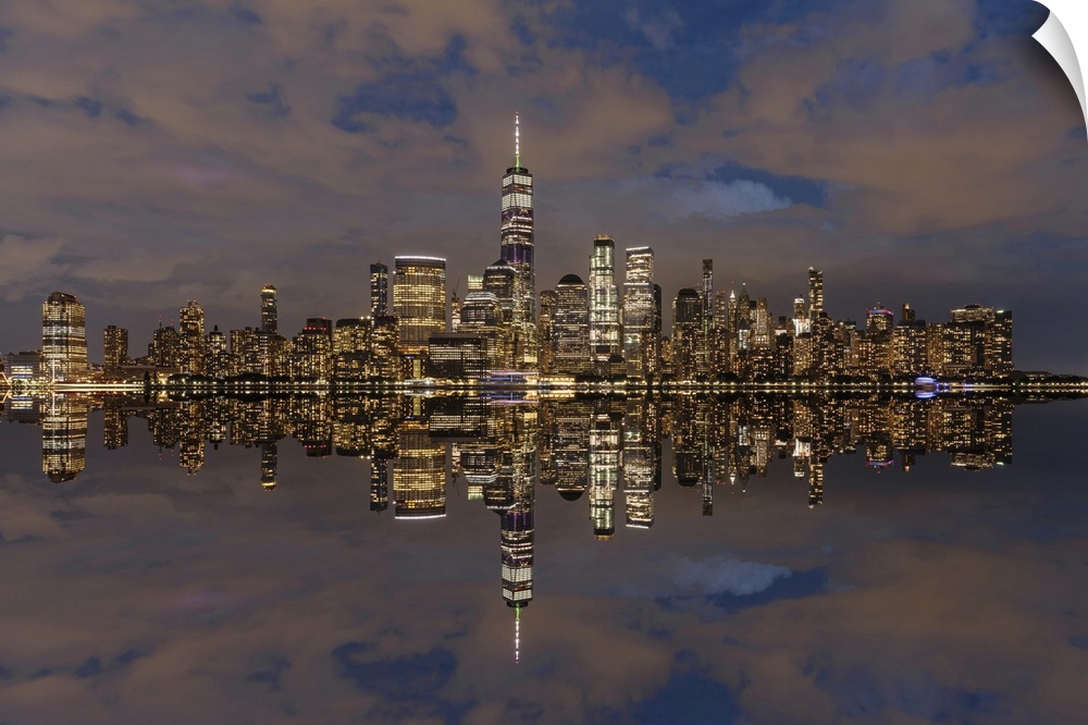 <p>View from Jersey City of Lower Manhattan with the One World Trade Center, New York City, New York State, United States of America, North America</p>
